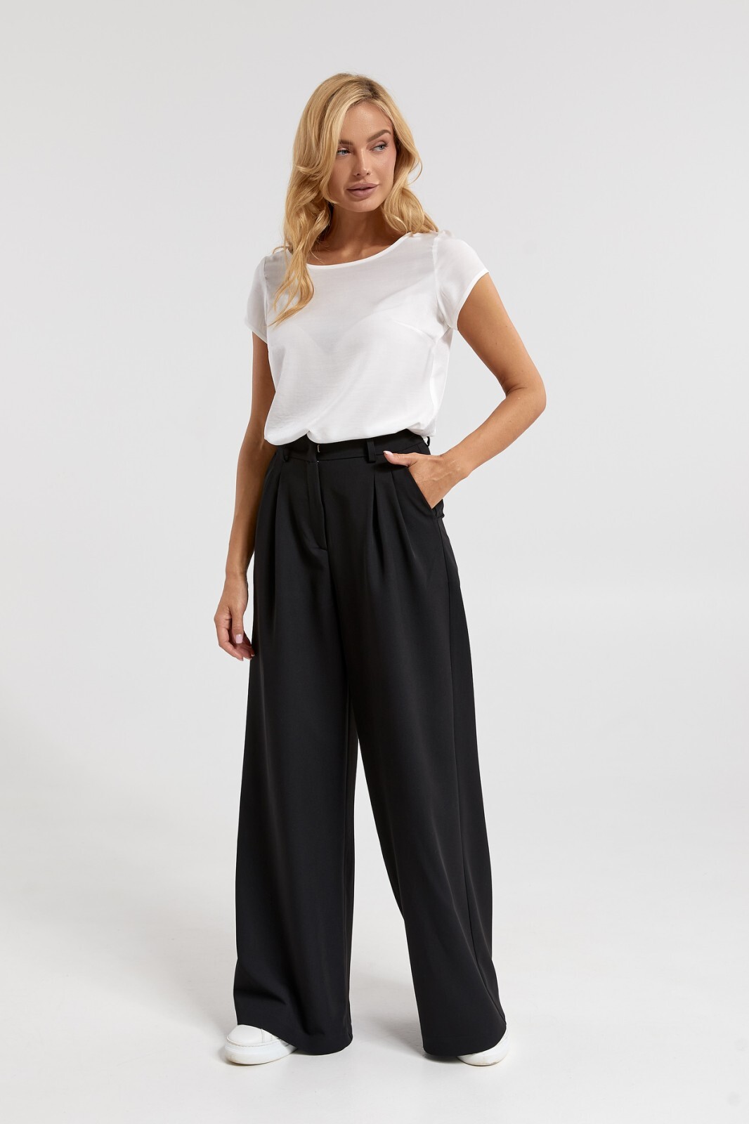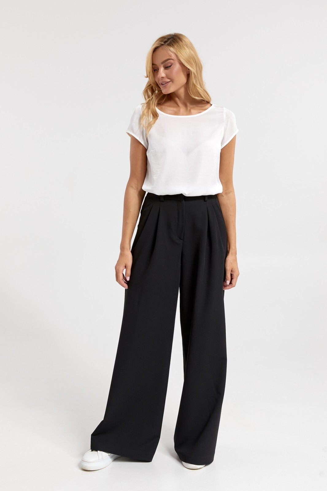 Склад: віскоза-62% поліестр-36% еластан-2% Стильна мінімалістична блуза з коротким рукавом — базова модель, яка легко стане універсальним доповненням до вашого гардеробу. Напівприлеглий фасон дозволяє носити її як заправленою, так і на випуск, створюючи акуратний і сучасний силует. Виріз горловини у формі човника додає блузі елегантності, а відсутність застібок робить її максимально зручною для щоденного носіння. Вшитий рукав довжиною 12 см гармонійно доповнює образ, роблячи його легким та стильним. Ідеально поєднується як із кежуальними, так і з класичними образами.