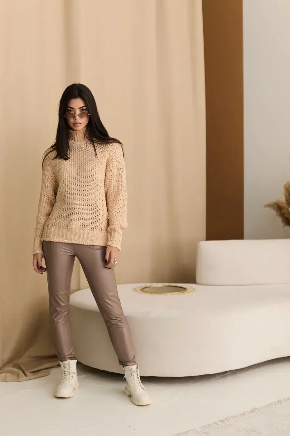 Довжина брюк S=101,5 см, M=102 см, L=102,5 см, XL=103 см Стильні жіночі виконані з діагональ-замші. М'яка та приємна до тіла тканина. Завищена талія, збоку є таємна блискавка.