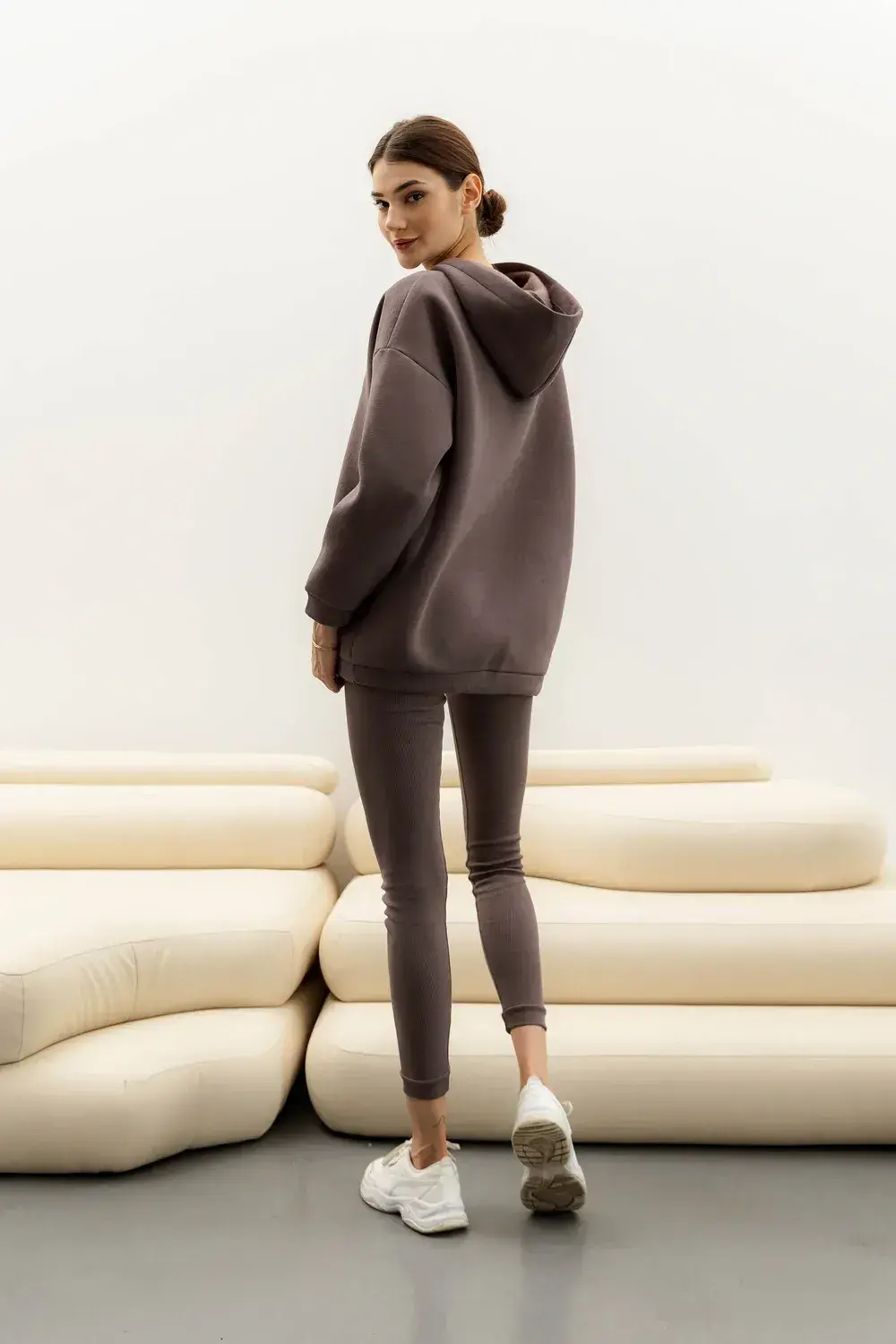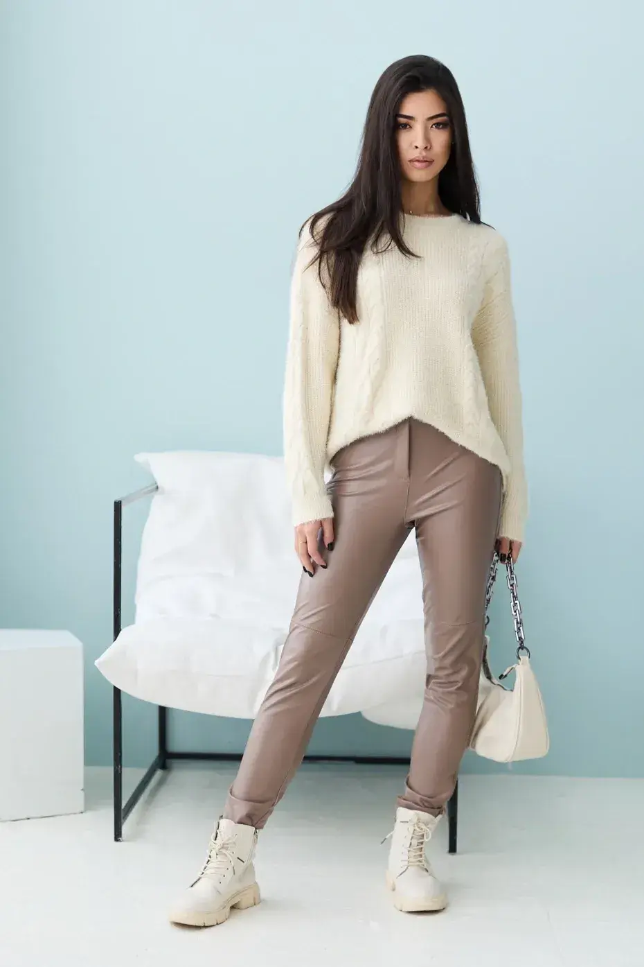 Довжина брюк SM=96,5 см, L-XL=97,5 см Відмінною заміною джинсам на весну та осінь будуть лосини з еко-шкіри на флісі. Короткий дизайн і приємний колір підійдуть до будь-якого образу. Талія підвищена. Застібається на таємну блискавку та кнопку. Є імітація кишень.